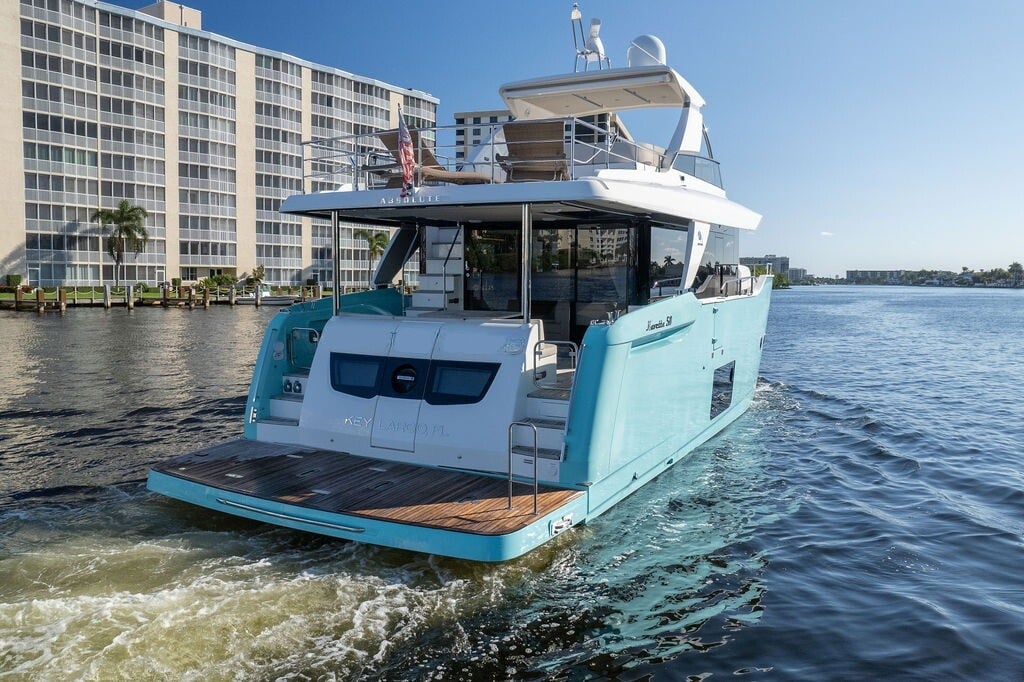 The expansive flybridge beckons with its panoramic views and ample seating, providing an ideal setting for unforgettable moments with friends and family. Whether you're basking in the sun, sipping cocktails at the wet bar, the 58' 2021 Absolute yacht promises to elevate your leisure time to new heights.