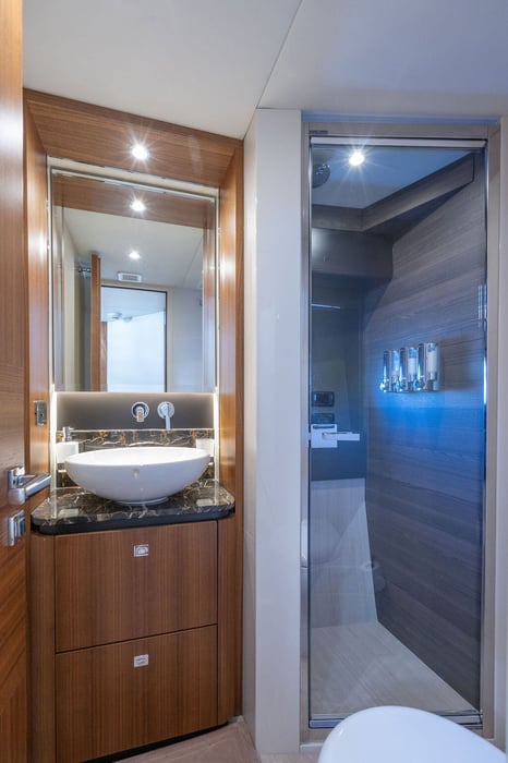 Luxury extends beyond the interiors and into the carefully designed outdoor spaces. The yacht features multiple lounging areas, a spacious swim platform for water activities, and a fully equipped galley for gourmet meals on the deck. Every detail has been considered to ensure a seamless blend of comfort and style.